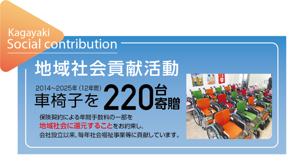 2025年12月26日、松山市総合福祉センターをはじめ、新居浜市・四国中央市の全3会場にて、株式会社かがやき総合保険企画による車椅子寄贈式を開催いたしました。